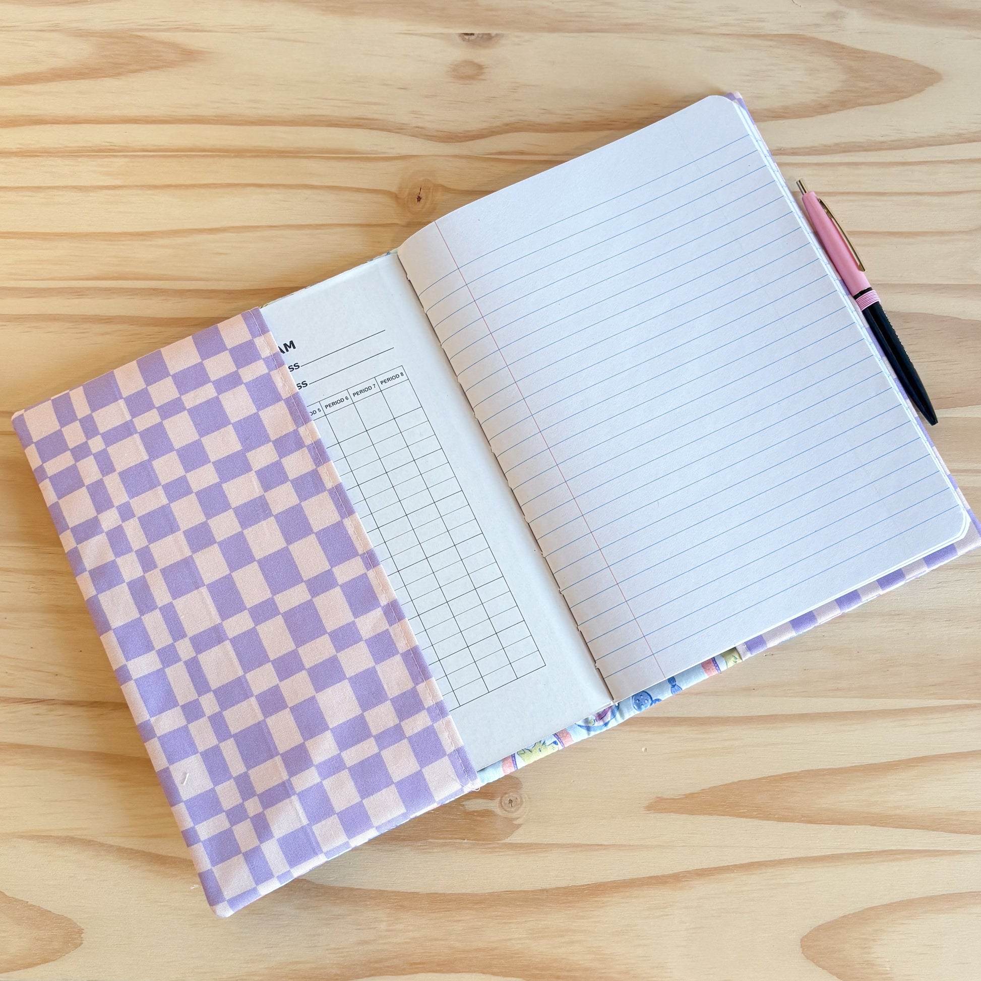 - Standard composition book (9.75” tall by 7.5” wide; 25cm by 19cm)