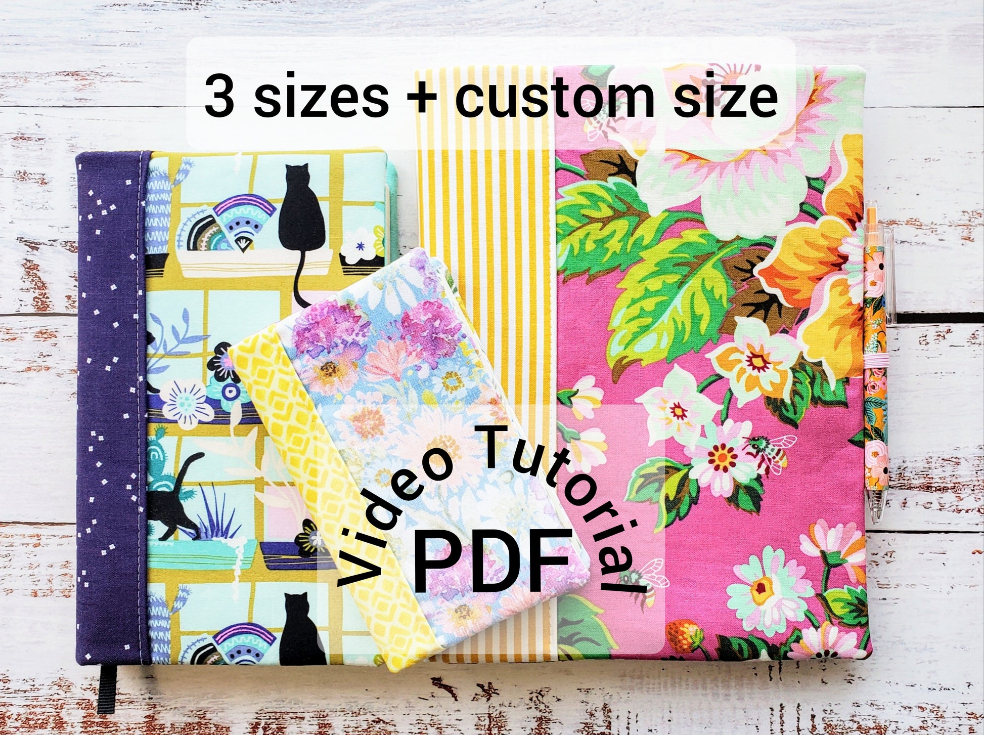 Anais Book Cover, 3 sizes and custom size, Beginner-friendly sewing pattern