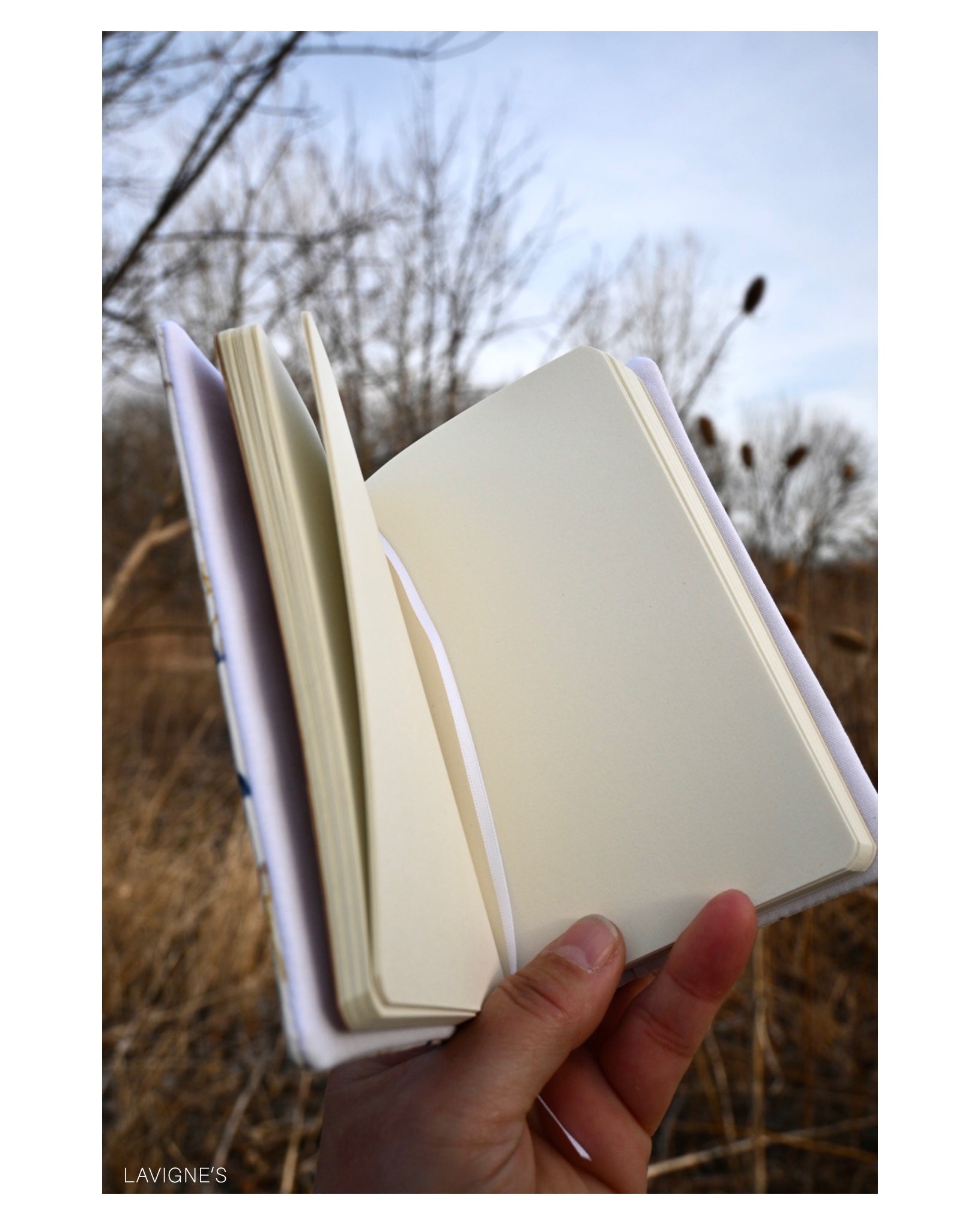 - Moleskine Large hard cover notebook (8.25” tall by 5” wide; 21cm by 13cm)